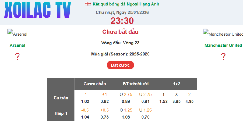 Cuộc chạm trán giữa Arsenal vs Manchester United vào lúc 23:30 ngày 25/01. Xoilac chắc chắn sẽ mang lại những cảm xúc vỡ òa cho người hâm mộ. Với lợi thế sân nhà và phong độ ổn định, Arsenal đang nắm giữ cơ hội lớn để giành trọn 3 điểm. Manchester United cần phải cải thiện rất nhiều nếu muốn rời London với một kết quả có lợi.