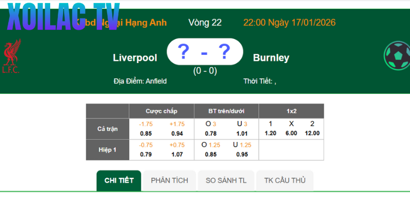 Trận đấu giữa Liverpool – Burnley diễn ra vào lúc 22:00 ngày 17/01 tới đây, xoilac hứa hẹn sẽ mang lại nhiều cảm xúc cho người xem. Với sự vượt trội về mọi mặt, Liverpool được kỳ vọng sẽ tạo nên một màn trình diễn mãn nhãn và thuyết phục. Burnley dù đang nỗ lực nhưng có lẽ Anfield không phải là nơi để họ có thể mang về dù chỉ là 1 điểm.