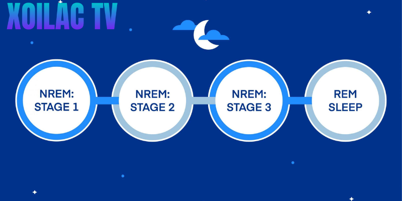Mỗi chu kỳ giấc ngủ bao gồm hai trạng thái chính là NREM (Non-Rapid Eye Movement – Ngủ không chuyển động nhãn cầu nhanh) và REM (Rapid Eye Movement – Ngủ chuyển động nhãn cầu nhanh). Dưới đây là mô tả chi tiết về bốn giai đoạn cụ thể trong một vòng lặp: